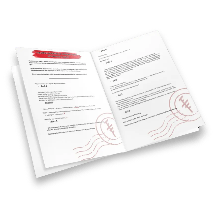 This exclusive PDF guide is packed with actionable insights, practical strategies, and unique “Matt-Isms” that have transformed the lives of countless clients. From T1D hacks to lightbulb moments shared by private clients, this resource offers everything you need to take control of your diabetes and thrive with confidence.